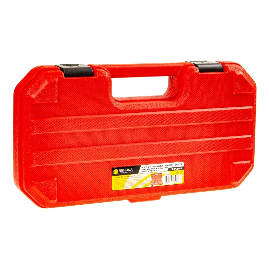 Набор фиксаторов для обслуживания двигателей ER-86735 Сitroen, Peugeot(1.8, 2.0) 13 предметов в кейсе ЭВРИКА Применяется в автосервисах и станциях техобслуживания в качестве вспомогательного инструмента для быстрого и эффективного ремонта двигателя. Для безопасного хранения и транспортировки используется специальный кейс. Каждый предмет набора располагается на отдельной позиции. Данный комплект фиксаторов позволяет проводить корректную установку фаз ГРМ двигателя во время замены приводного ремня. Подходит для большинства современных автомобилей, как с HPI (бензин), так и HDI (дизель) двигателями. Применение: 16V бензиновые двигатели с двумя распредвалами Citroen и Peugeot. Комплектация: Приспособление для натяжения ремня ГРМ: ОЕМ 0189S2. Приспособление для фиксации шкива Приспособление для натяжения ремня ГРМ: OEM 0178E. Приспособление для натяжения ремня ГРМ: OEM 0188J2. Оправка для натяжения шкива: ОЕМ 0189S1. Фиксаторых2 шт: ОЕМ 0132AB. Фиксатор: ОЕМ 0189B. Фиксатор: ОЕМ 0188M. Фиксатор: ОЕМ 0194B. Фиксатор маховика: ОЕМ 0189R. Инструмент для фиксации натяжителя ремня. ОЕМ 7017TR. Фиксатор шестерни коленвала. ОЕМ 0188AH.