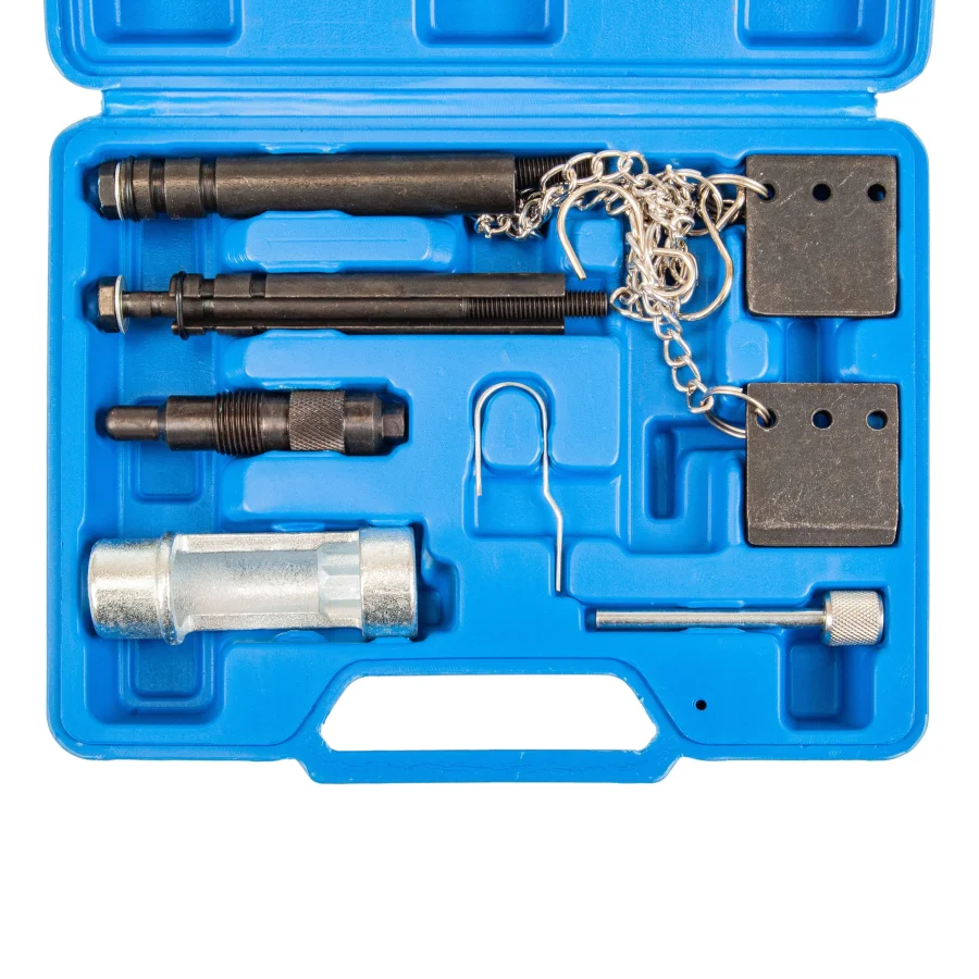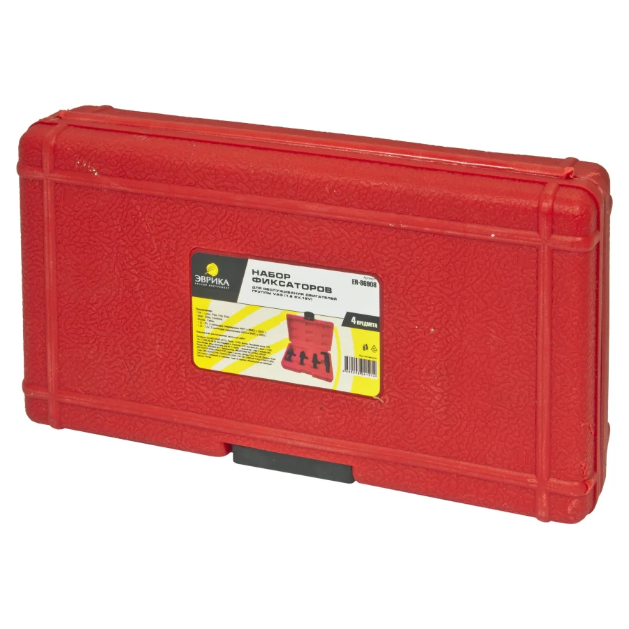 Набор фиксаторов для обслуживания двигателей ER-86908 группы VAG(1.2 6v,12v) 4 предмета в кейсе ЭВРИКА Применяется в автосервисах и станциях техобслуживания в качестве вспомогательного инструмента для быстрого и эффективного ремонта двигателя. Используется для блокировки распределительного вала при регулировке фаз ГРМ. Для безопасного хранения и транспортировки используется специальный кейс. Каждый предмет набора располагается на отдельной позиции. Комплектация: Фиксатор распредвала (арт. 4769-1, 4769-3): 3 шт. Фиксирующий палец маховика (арт. 4769-2): 1 шт. Оригинальные номера: Т10120 (4769-3), Т10121 (4769-2), Т10123 (4769-1). Применение: Применяется в автомобилях Volkswagen Polo, Fox, Skoda Fabia, Seat Ibiza/Cordoba. Для двигателей 2-х и 3-х цилиндровых, объемом 1.2л, 6/12V.