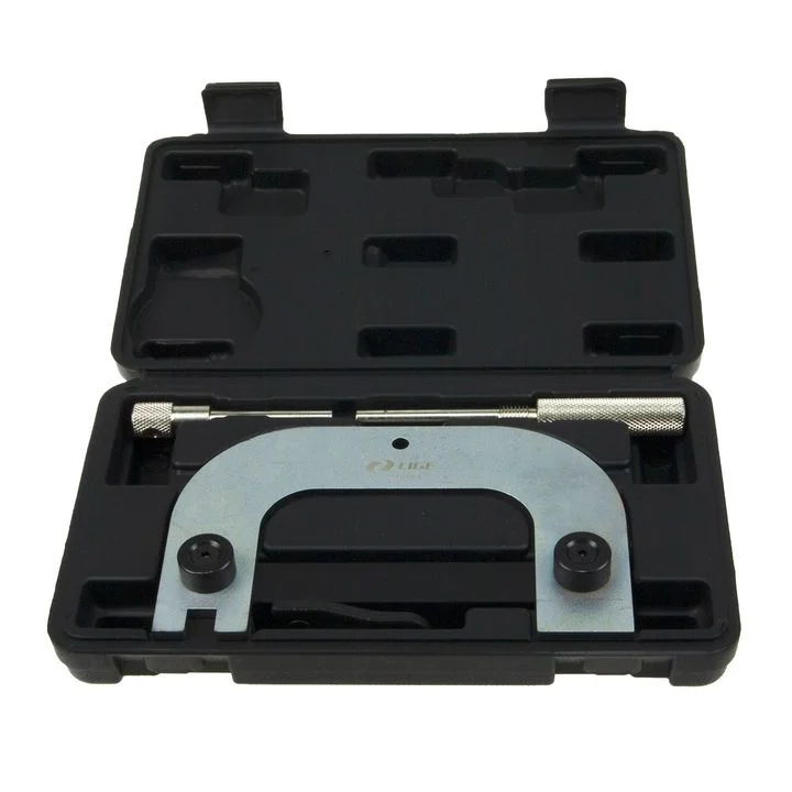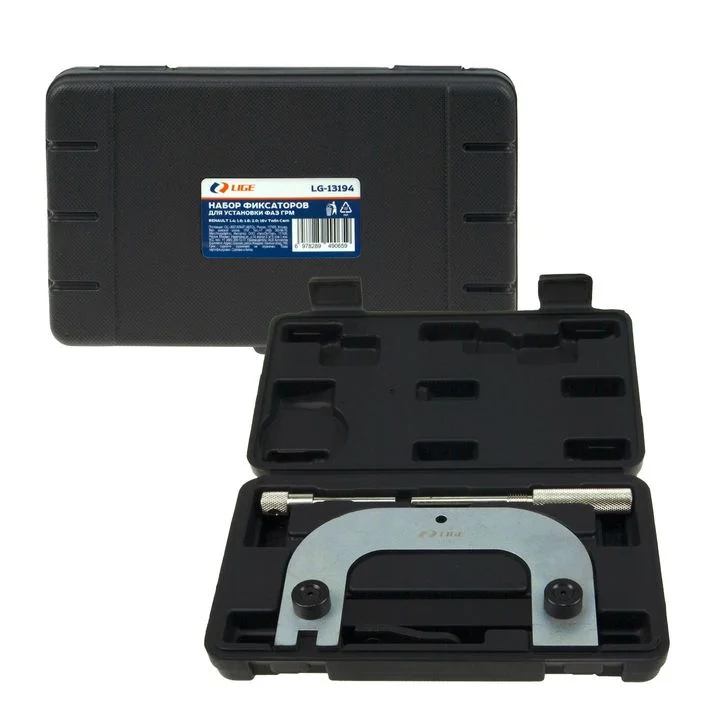 "НАБОР ФИКСАТОРОВ ДЛЯ УСТАНОВКИ ФАЗ ГРМ ВЕС: 1.27кг Размер кейса: 240 × 142 × 53мм Используется для двигателя Renault 1.4/1.6/1.8/2.0 ГРМ Материал: сталь 45# Подходит для: Renault: Avantime, Clio, Espace, GrandEspace, KangooTrekka, Laguna Megane, Scenic RX4, Trafic ll Twingo ll, Vel Satis, Wind Nissan: Kubistar X76 Primastar Opel/Vauxhall: Vivaro (01-11) Состав: 1 Инструмент для фиксации распредвала 2 Фиксирующий штифт маховика 3 Фиксирующий штифт маховика"