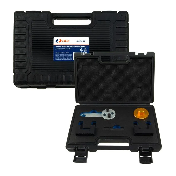 "НАБОР ФИКСАТОРОВ РАСПРЕДВАЛА ДЛЯ УСТАНОВКИ ФАЗ ГРМ (MERCEDES-BENZ M654) Вес: 1.99кг Размер кейса: 300 × 195 × 60мм. Материал: 45# steel. Подходит для: A Class(from 2019),B Class(from 2019),C Class(from 2018),CLA(from 2019), CLS(from 2018),E Class(from 2016),GL(from 2019),GLC Coupe(from 2019),GLE(from 2019),VClass (from 2019),Vito(from 2019). Модели двигателя: 1.6L-654.916,2.0L-654.920"