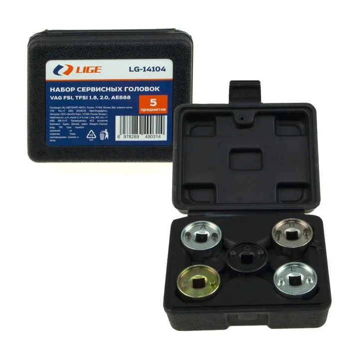 "НАБОР СЕРВИСНЫХ ГОЛОВОК 3/8"" 5ПР ВЕС: 0.50кг Размер кейса: 130 × 104 × 50мм Используется при разборке клапана регулировки распредвала двигателя Volkswagen EA888. Материал: сталь 45# Подходит для: автомобили Volkswagen Audi первого поколения/второго поколения/третьего поколения с двигателем EA888. Список продуктов: 5 шт. втулка для разборки клапана регулировки распредвала двигателя EA888"