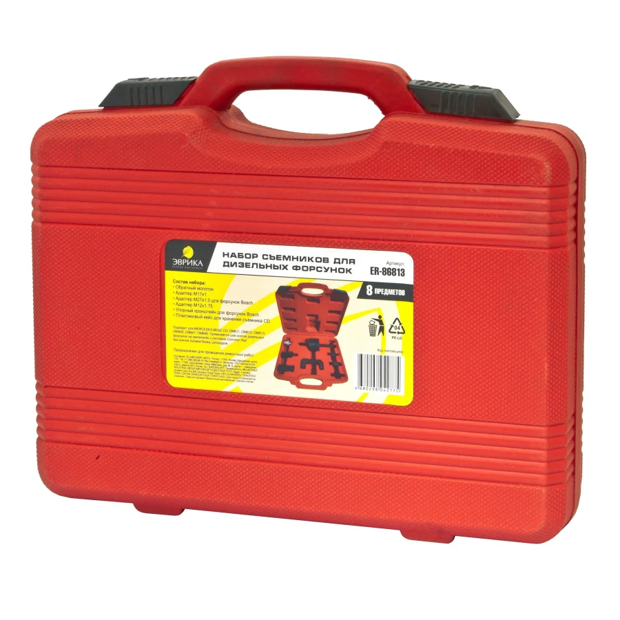 Съемник дизельных форсунок обратный молоток 8пр. ЭВРИКА. Применяется для дизельных двигателей Mercedes-benz CDI OM 611, 612, 613, 646, 647, 648 Vertul. Комплектация: Обратный молоток Адаптер М17х1 Адаптер М27х1.0 для форсунок Bosch Адаптер М12х1.75 Кронштейн упорный для форсунок Bosch