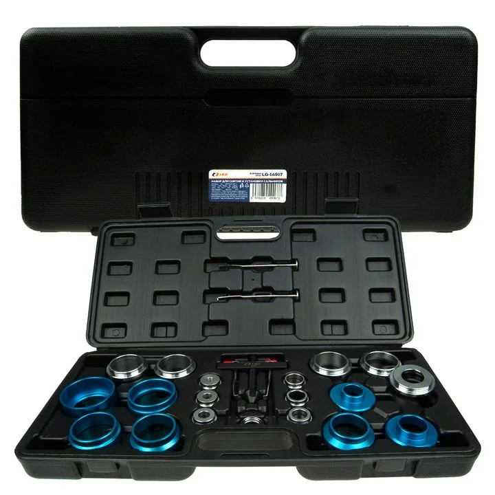 "НАБОР ДЛЯ СНЯТИЯ И УСТАНОВКИ САЛЬНИКОВ Ø 28-64ММ, 22ПР Вес: 2.01кг Размер кейса: 470 × 265 × 65мм. Материал: сталь 45# Размеры уплотнения: 28-64 мм Состав и технические характеристики: - Съемник для снятия уплотнения x1 - Кронштейн для снятия уплотнения x2 - Адаптер верхней крышки x7 - Распорное кольцо шкива коленчатого вала x4 - Адаптер для установки уплотнения x7 - Установочная перегородка x1 НОМЕР. Наименование A Рама для снятия уплотнения B1/B2 Кронштейн для снятия уплотнения C Адаптер верхней крышки 8 мм D Адаптер верхней крышки 10 мм E Адаптер верхней крышки 12 мм F Адаптер верхней крышки 14 мм G Адаптер верхней крышки 16 мм H Адаптер верхней крышки 18 мм I Адаптер верхней крышки 20 мм J Распорное кольцо шкива коленчатого вала 27 мм K Распорное кольцо шкива коленчатого вала 22 мм L Распорное кольцо шкива коленчатого вала 18 мм M Распорное кольцо шкива коленчатого вала 10 мм N Адаптер для установки уплотнения 64 мм O Адаптер для установки уплотнения 56 мм P Адаптер для установки уплотнения 49 мм Q Адаптер для установки уплотнения 46 мм R Адаптер для установки уплотнения 42 мм S Адаптер для установки уплотнения 34 мм T Уплотнение Монтажный адаптер 28 мм U-образная монтажная перегородка"