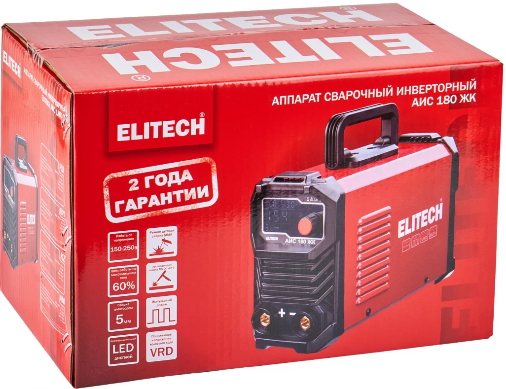 Основные преимущества инвертора Elitech АИС 180 ЖК (204744):