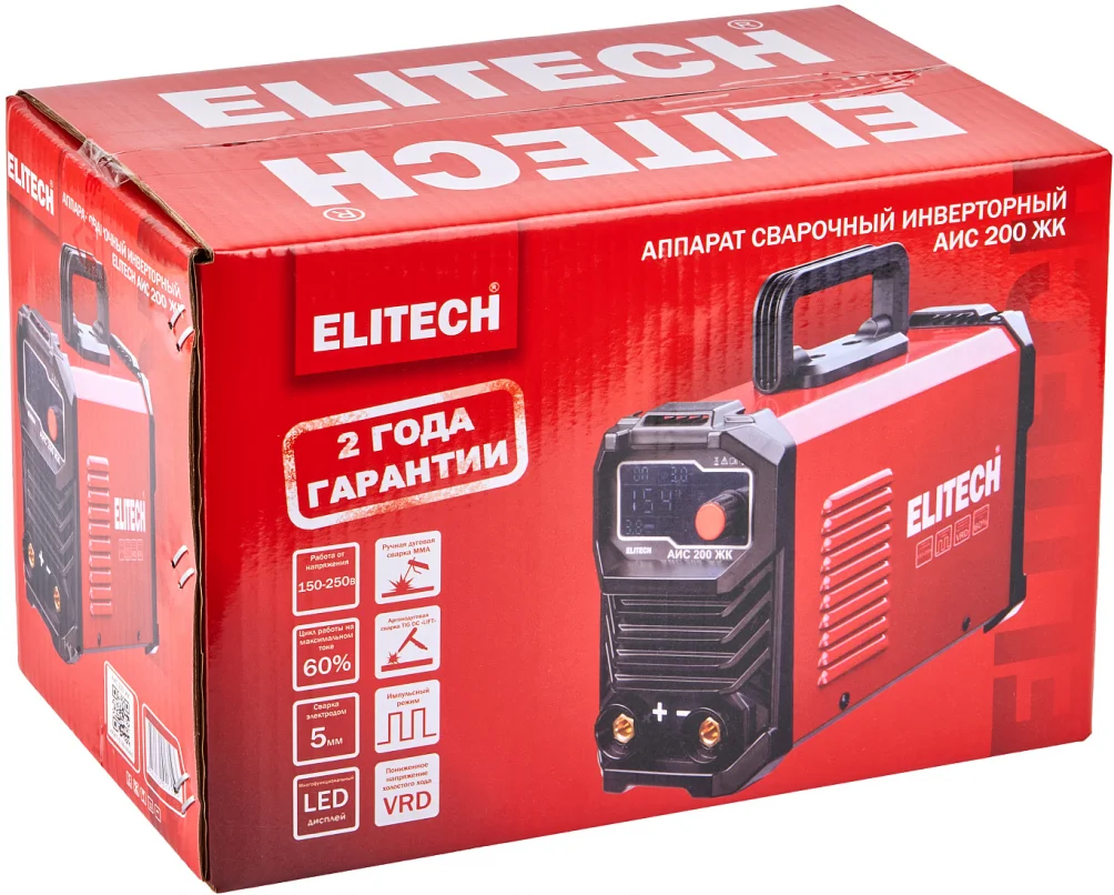 Основные преимущества инвертора Elitech АИС 200 ЖК (204745):