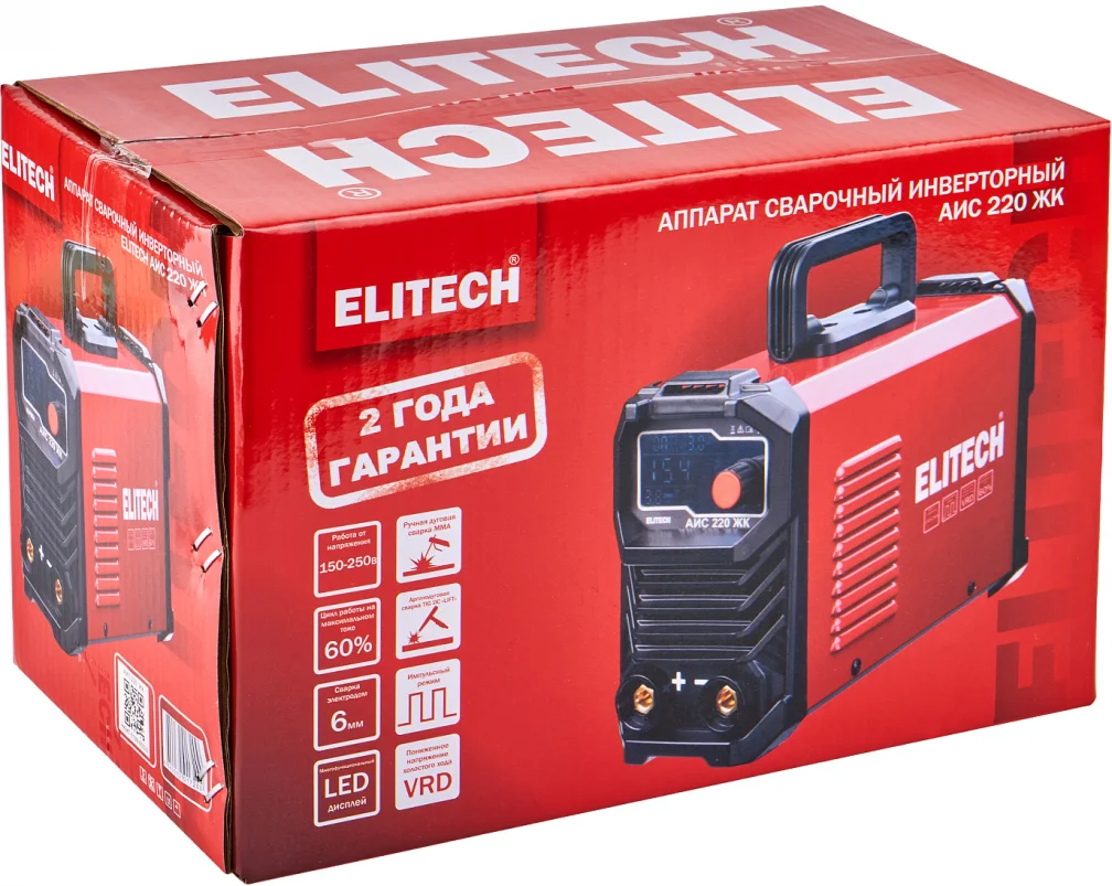 Основные преимущества инвертора Elitech АИС 220 ЖК (204746):