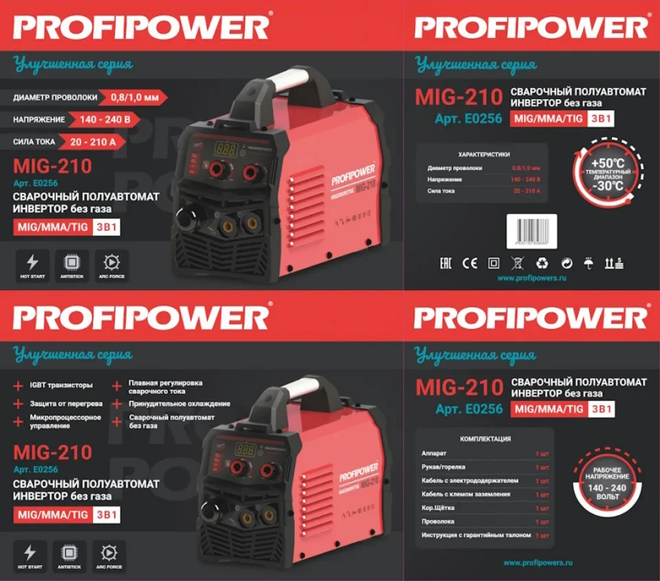 PROFIPOWER MIG-210 — надежный выбор для тех, кто ценит универсальность, качество и простоту в работе с металлом.