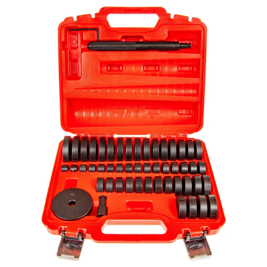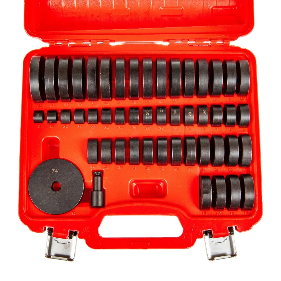 Набор инструмента оправок для монтажа подшипников, втулок, сальников, 51пр.(18-65мм с шагом 1мм, 75мм) ЭВРИКА ER-86739 Высококачественные оправки для монтажа подшипников, втулок и сальников, которые станут незаменимым инструментом для профессионалов и любителей. Эти изделия предназначены для упрощения процесса установки и демонтажа различных элементов, что значительно экономит время и усилия. Правильный выбор оправок для монтажа — это залог успешной работы в любом ремонте или техническом обслуживании. Наши оправки для втулок обеспечивают точность и надежность, позволяя избежать повреждений деталей и минимизируя риск возникновения дополнительных проблем. Каждая оправка изготовлена из прочных материалов, что гарантирует их долговечность и устойчивость к износу. При использовании оправок для монтажа подшипников вы сможете легко и быстро выполнять необходимые операции, не прибегая к сложным и затратным методам. Эти инструменты подходят для работы с различными типами подшипников, что делает их универсальным решением для широкого спектра задач. Благодаря эргономичному дизайну и продуманной форме, оправки удобно держать в руках, что обеспечивает комфорт при работе. К тому же данный набор будет отличным подарком папе, мужу, брату, дяде! Не упустите возможность улучшить свои рабочие процессы с помощью наших оправок. Заказывая у нас, вы можете быть уверены в том, что получите продукцию, соответствующую всем стандартам и требованиям. Размеры оправок: 18мм, 19мм; 20мм, 21мм, 22мм, 23мм, 24мм, 25мм, 26мм, 27мм, 28мм, 29мм; 30мм, 31мм, 32мм, 33мм, 34мм, 35мм, 36мм, 37мм, 38мм, 39мм; 40мм, 41мм, 42мм, 43мм, 44мм, 45мм, 46мм, 47мм, 48мм, 49мм; 50мм, 51мм, 52мм, 53мм, 54мм, 55мм, 56мм, 57мм, 58мм, 59мм; 60мм, 61мм, 62мм, 63мм, 64мм, 65мм; 74мм.