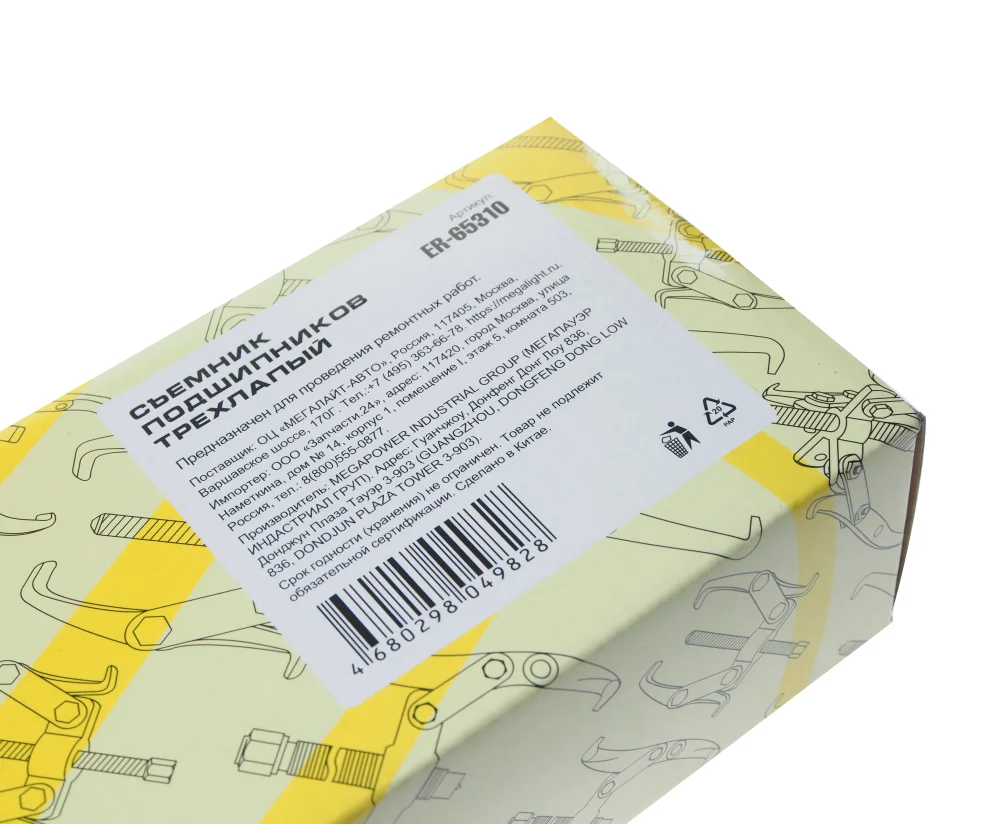 Съемник подшипников трехлапый 10" ER-65310 ЭВРИКА Применяется для снятия подшипников, шкивов и шестеренок. Корпус и лапы съемника изготовлены методом горячей штамповки из хромованадиевой стали, а винт имеет трапецеидальную упорную резьбу. Технические характеристики: Привод: механический Количество лап: 3 Класс товара: Профессиональный